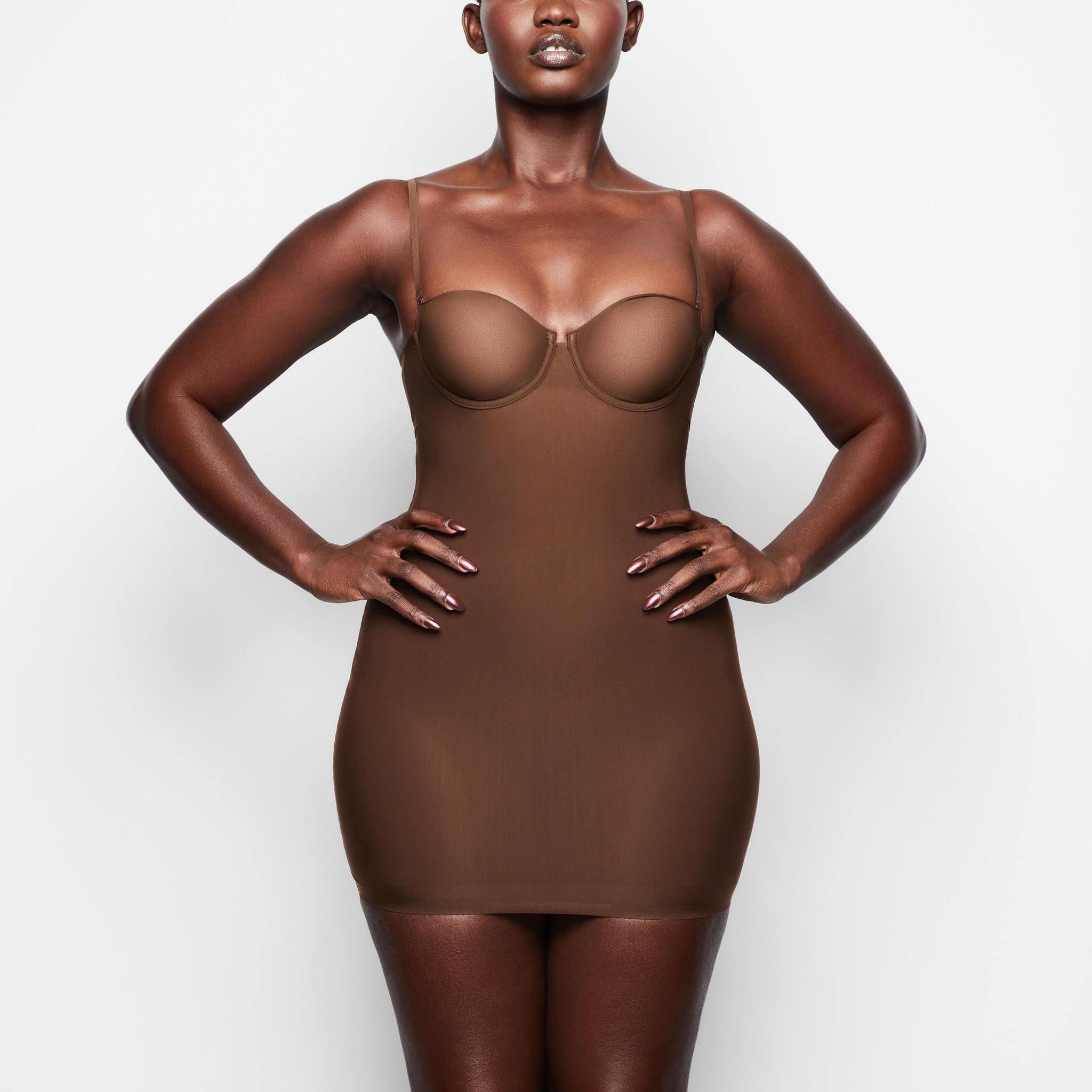 When selecting your size in the Slip Dress,we recommend taking your regular bra band and cup size.