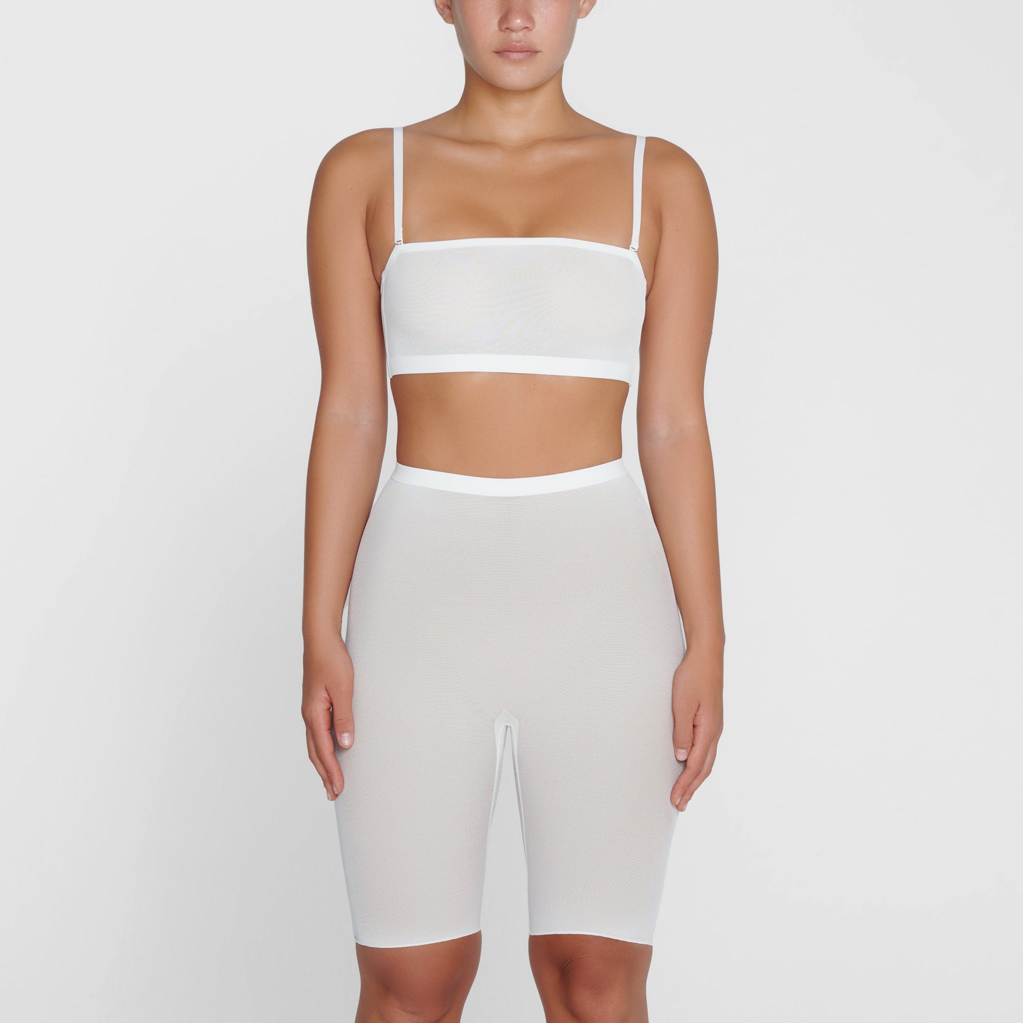 With its mid-thigh length and high-waist rise, this sheer short holds in your core, smooths your thighs, and shapes and lifts your butt. Its silky construction makes this piece an unexpected essential for enhancing your body’s natural shape.